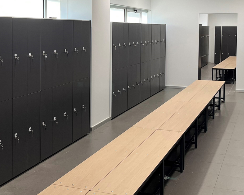 REAL ZARAGOZASector: Deportivo Localización: Zaragoza Solución: Taquillas metálicas puertas melamina, fenólico y metacrilato